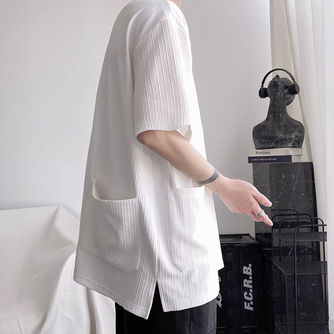 Multi-pocket 3/4 sleeve T-shirt(MT1156)