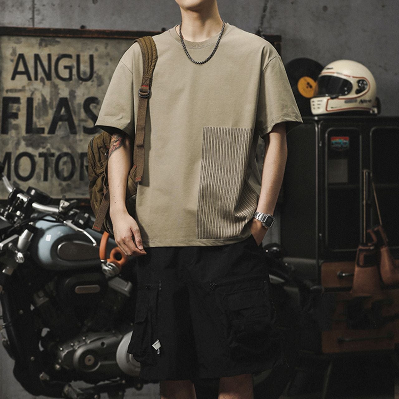Striped short-sleeved ice silk T-shirt(MT1235)