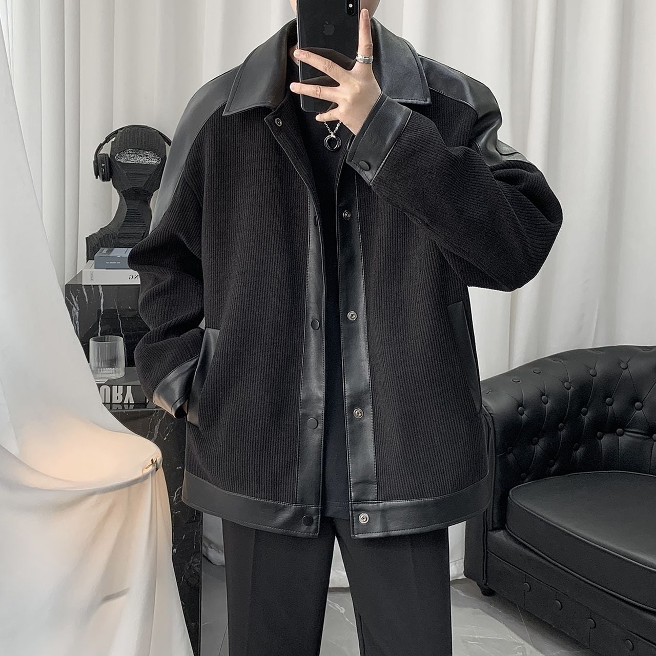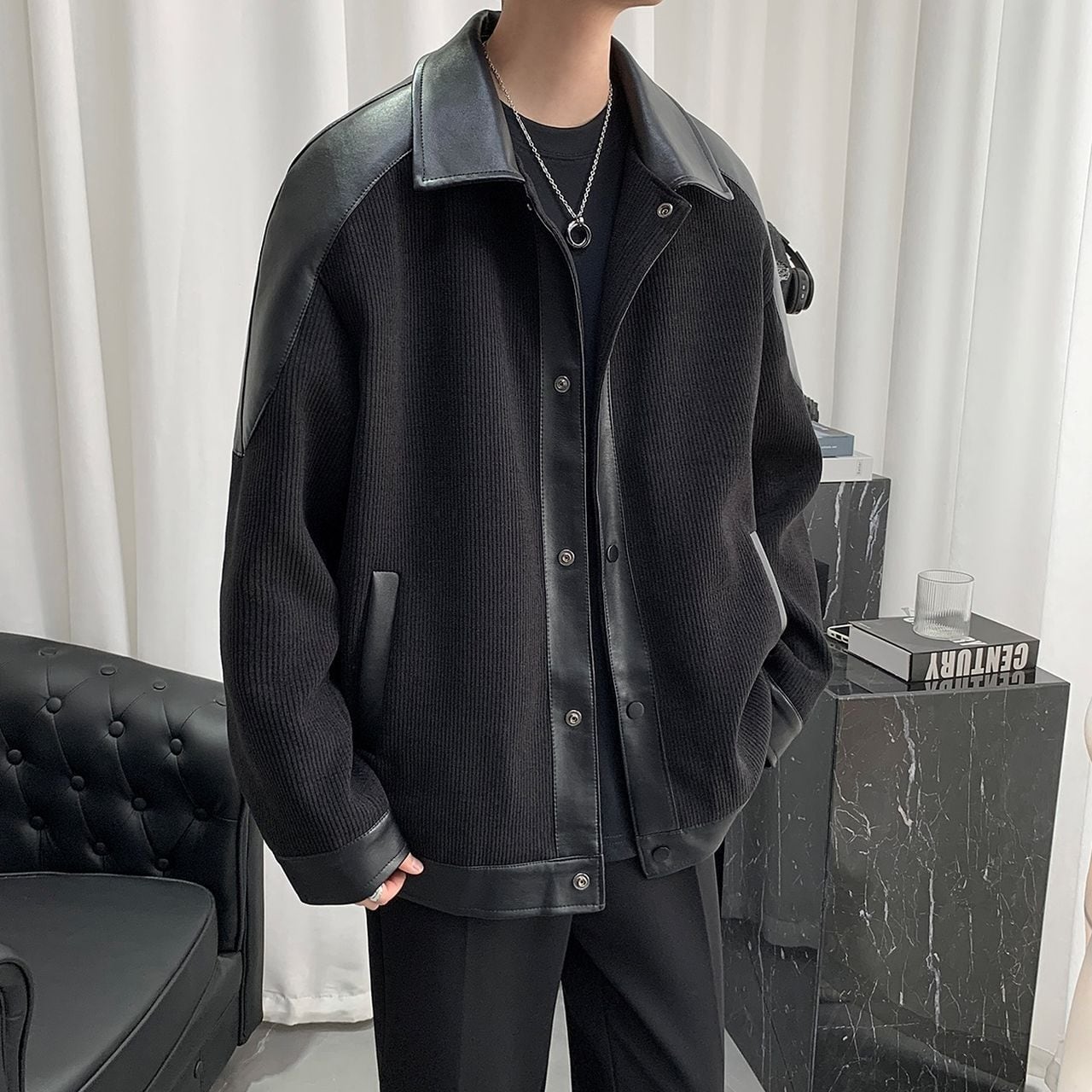 PU Leather Corduroy Jacket(MT1294)