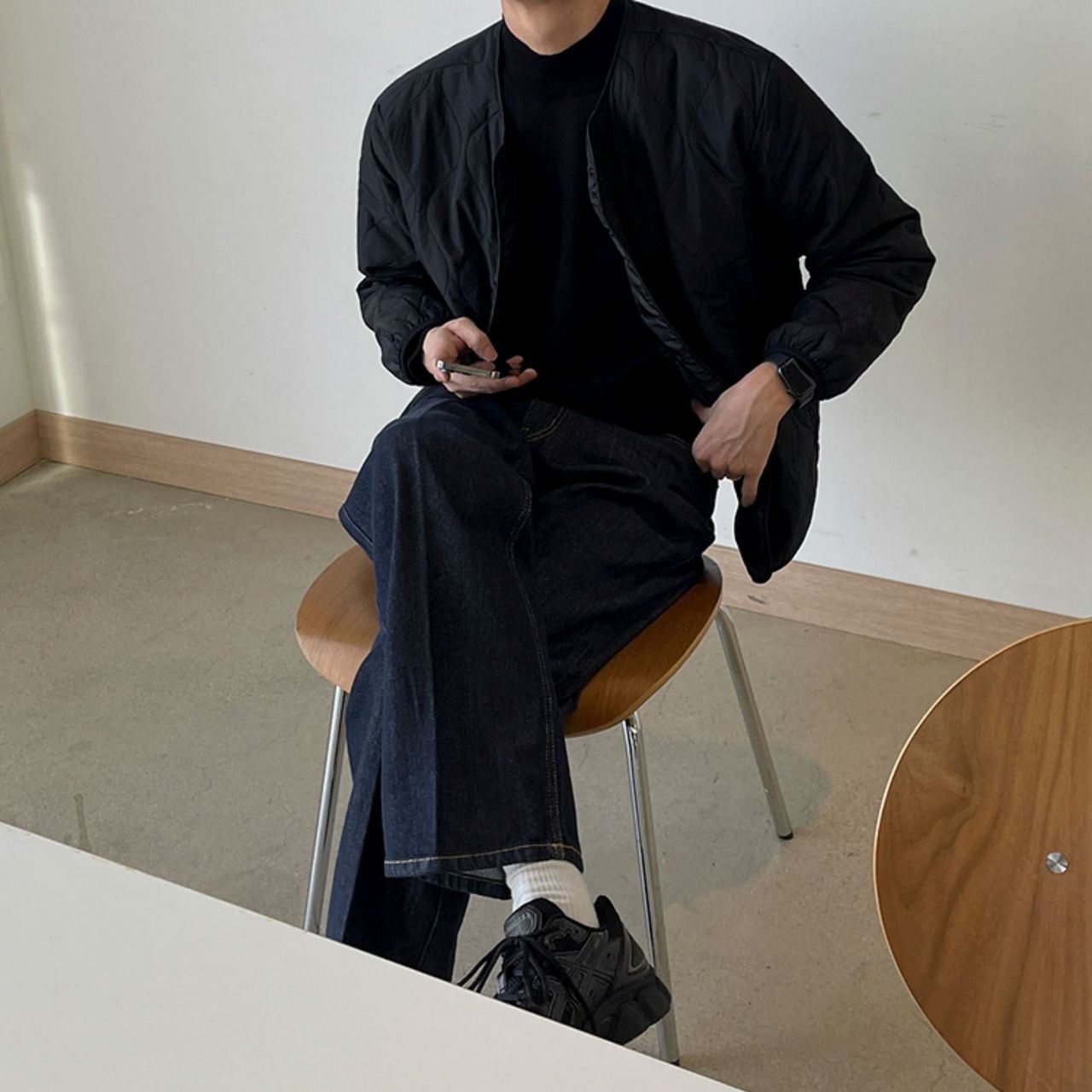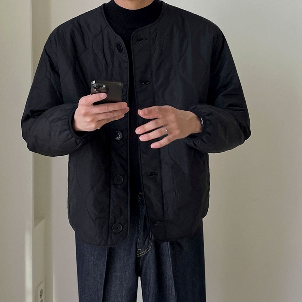 Loose-fitting collarless cotton jacket(MT1385)