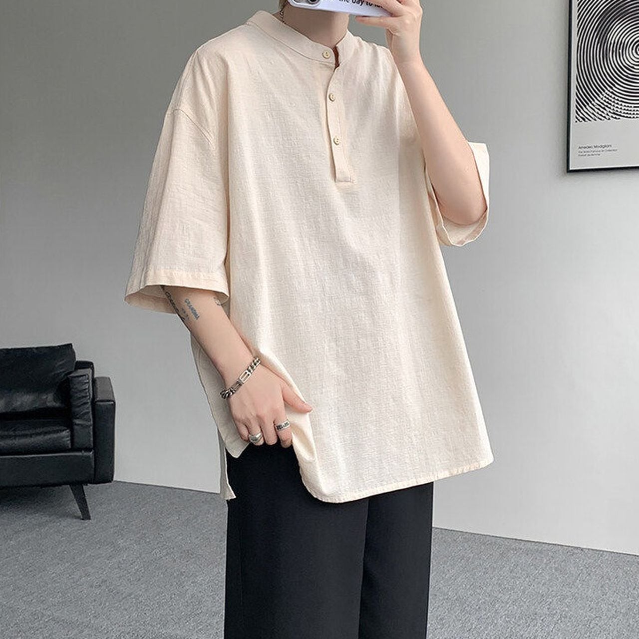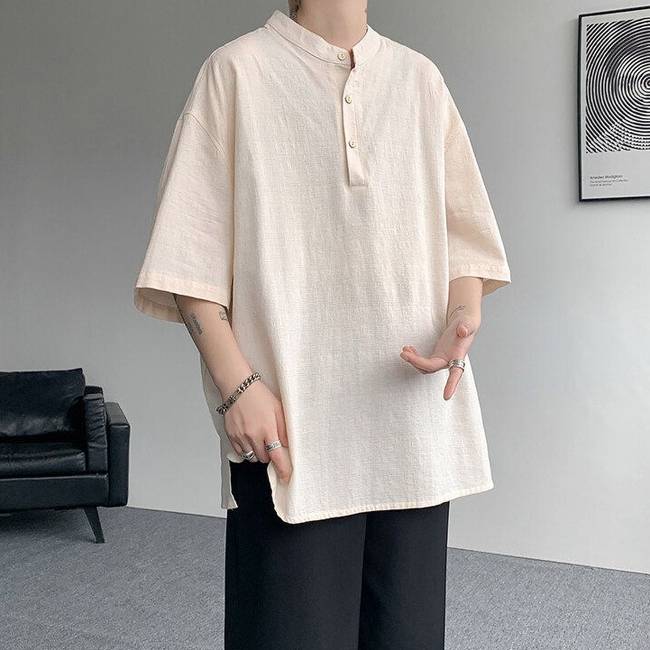 【カラー】 ブラック/ホワイト/ベージュ 【サイズ】 《M》着丈68.5cm、バスト116cm、袖丈21.5cm、肩幅52cm 《L》着丈70cm、バスト120cm、袖丈22.5cm、肩幅53.5cm 《XL》着丈71.5cm、バスト124cm、袖丈23.5cm、肩幅55cm 《2XL》着丈73cm、バスト128cm、袖丈24.5cm、肩幅57cm 《3XL》着丈74.5cm、バスト132cm、袖丈25.5cm、肩幅58.5cm 《4XL》着丈76cm、バスト136cm、袖丈26.5cm、肩幅60cm 《5XL》着丈77.5cm、バスト140cm、袖丈27.5cm、肩幅61.5cm 《6XL》着丈79cm、バスト144cm、袖丈28.5cm、肩幅63cm 《7XL》着丈80.5cm、バスト148cm、袖丈29.5cm、肩幅64.5cm 《8XL》着丈82cm、バスト152cm、袖丈30.5cm、肩幅66cm 【お届けについて】 こちらの商品は海外店舗より直接発送となる為、 ご入金から10日~21日前後でお届け致します。 ◼️注意事項 ・タイミングによっては 商品在庫切れにより 注文キャンセルとさせていただく恐れもございますので、予めご了承くださいませ。 ・こちらは輸入品となります。日本製とは検品基準が異なる為、 新品未使用品でもごくわずかな汚れや傷がある場合もございます。 ・商品の色味は、お手持ちのスマートフォンの画面によって実物と若干異なる場合がございます。 ・イメージ違いやサイズ交換等、お客さまご都合による交換、返品は対応出来かねます。 ———————————— ご購入前にこちらをお読みください →https://www.motto-shop.jp/about ————————————
