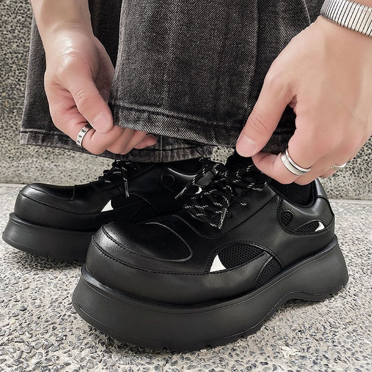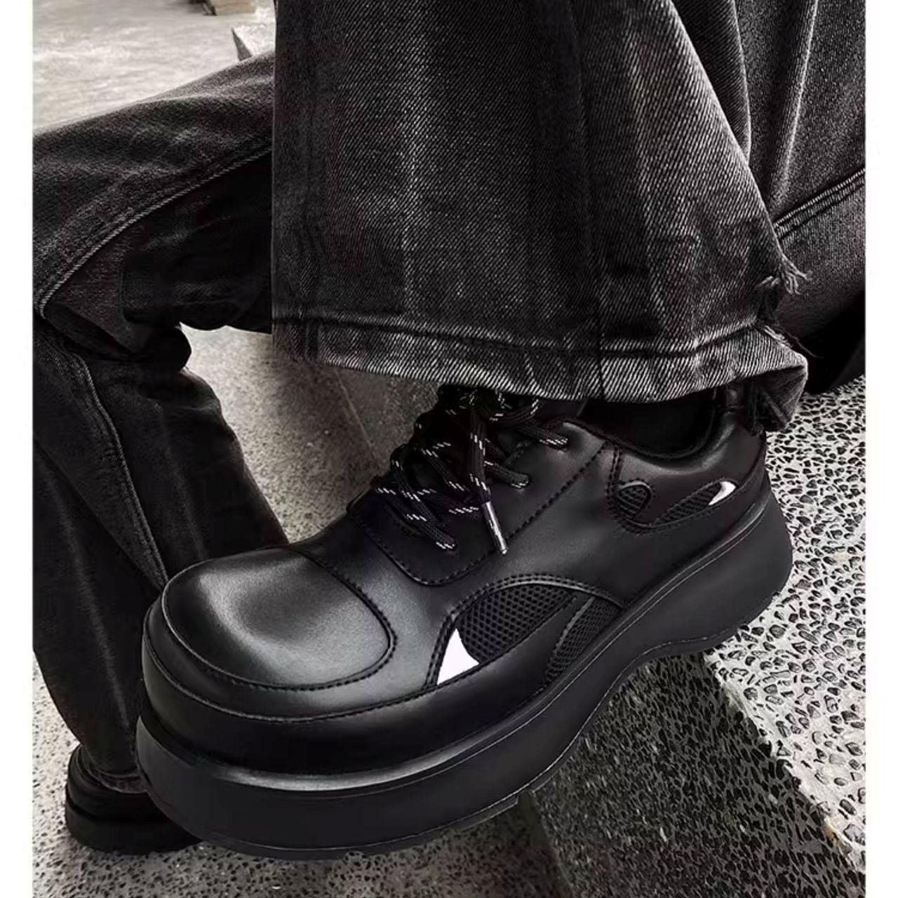 Platform, hidden wedge casual leather shoes(MT1484)