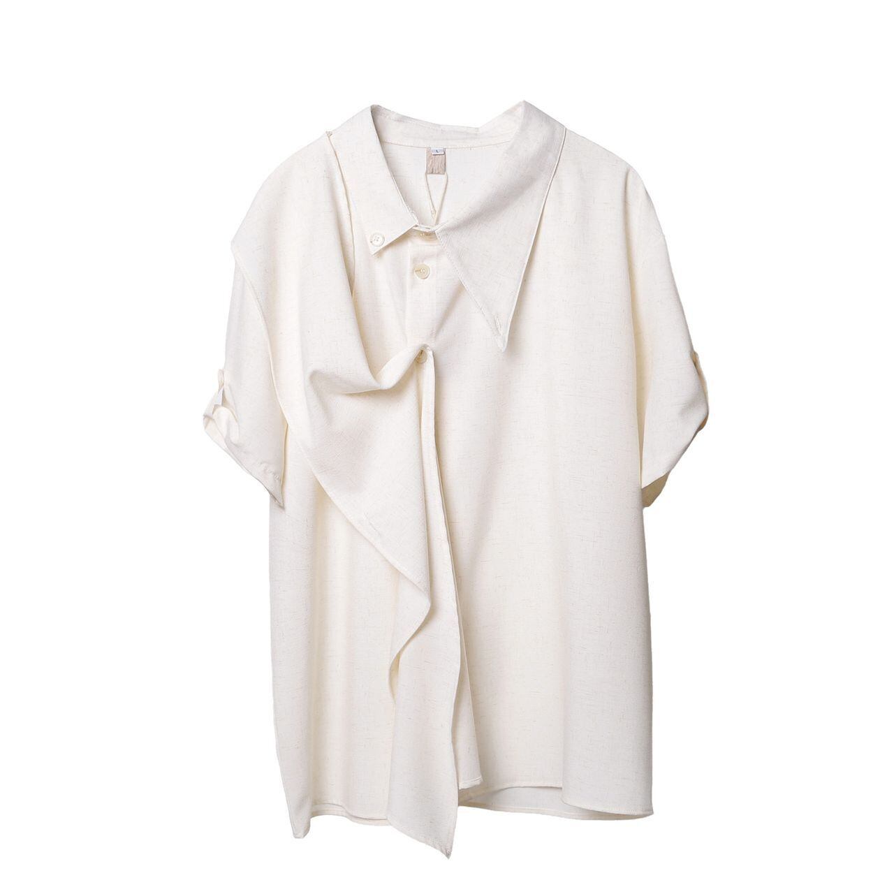Retro design short-sleeved shirt with ribbon(MT1488)