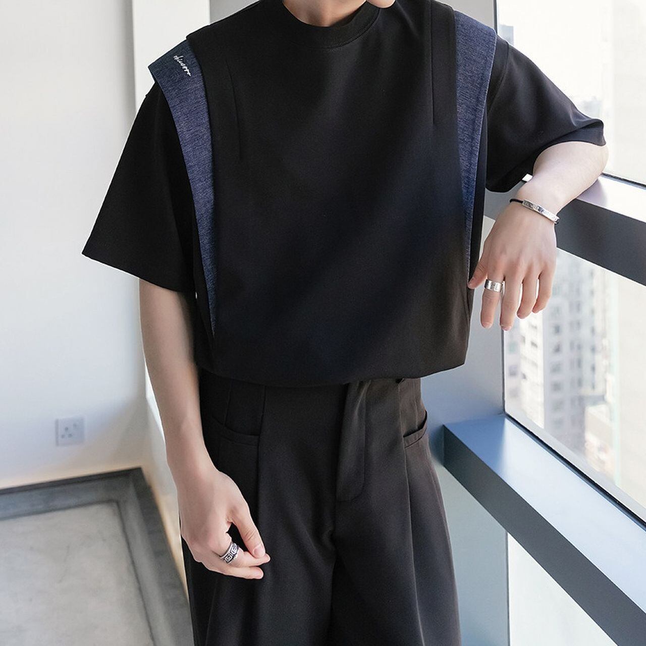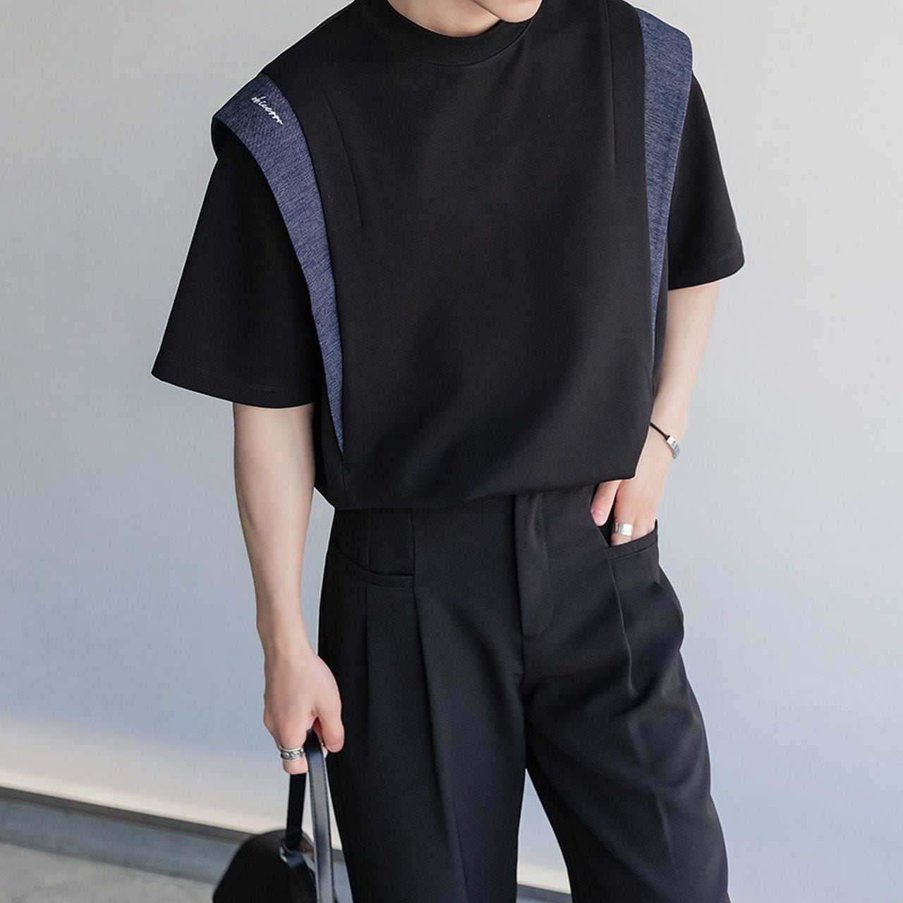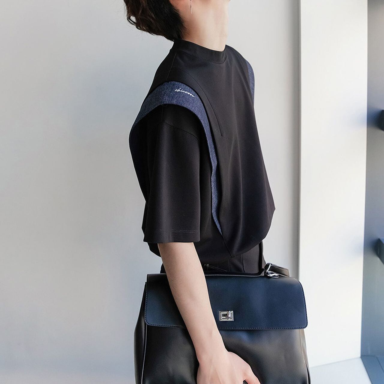 Embroidered patchwork loose-fitting short-sleeved T-shirt(MT1494)