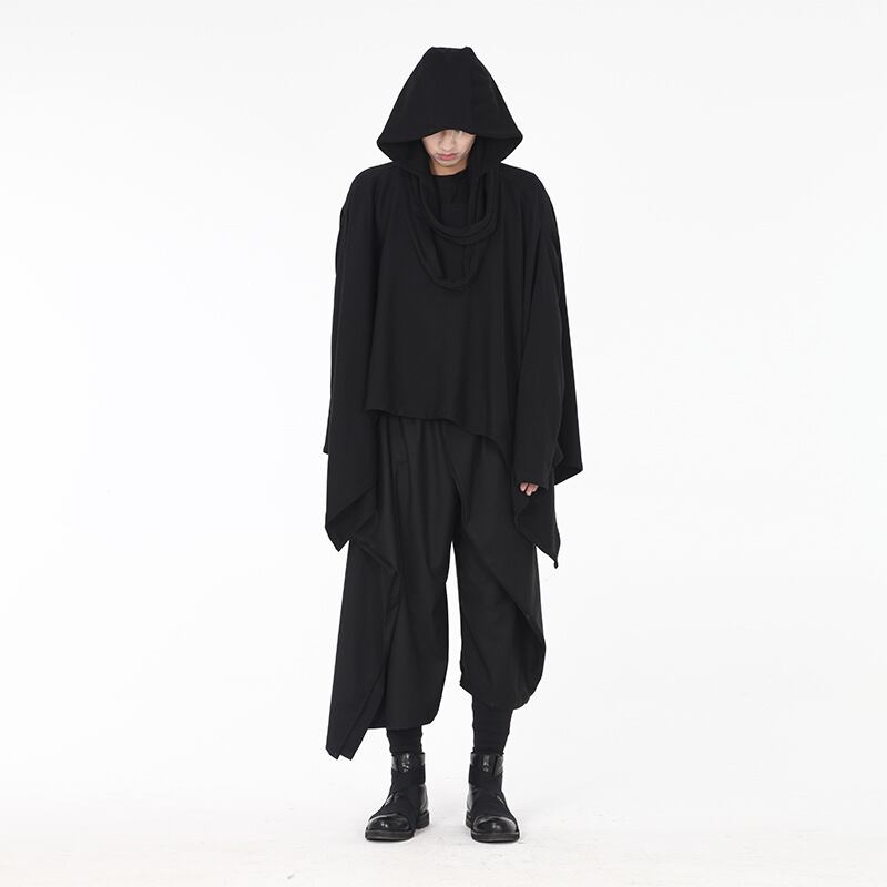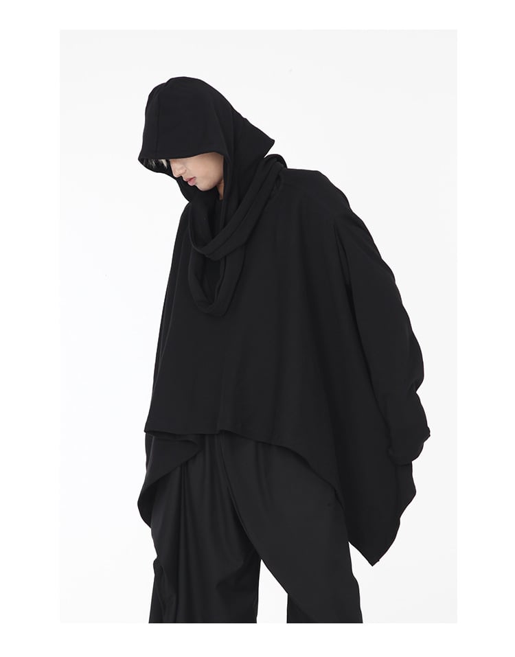 Hooded loose irregular middle length cloak jacket