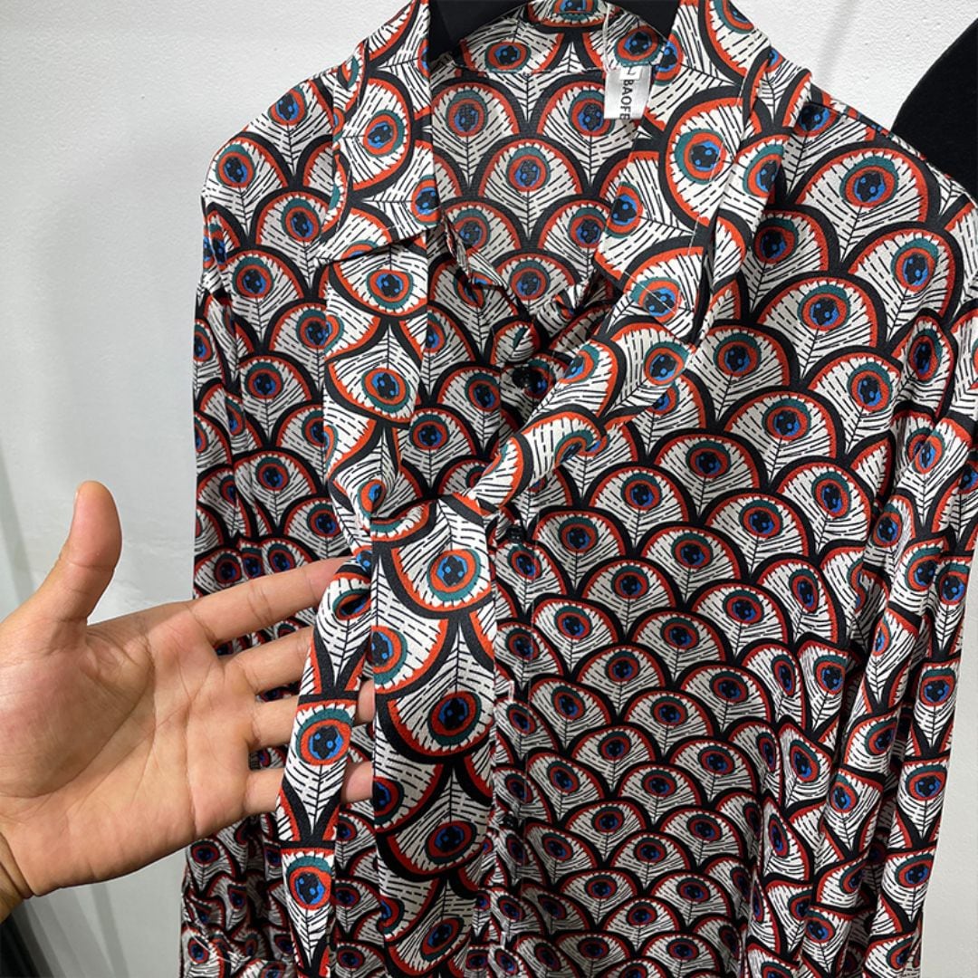 Peacock feather print long sleeve shirt