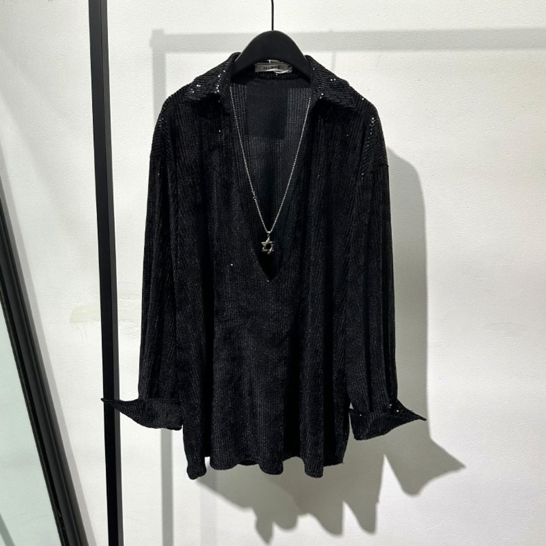 Sequined Deep V-Neck Shirt